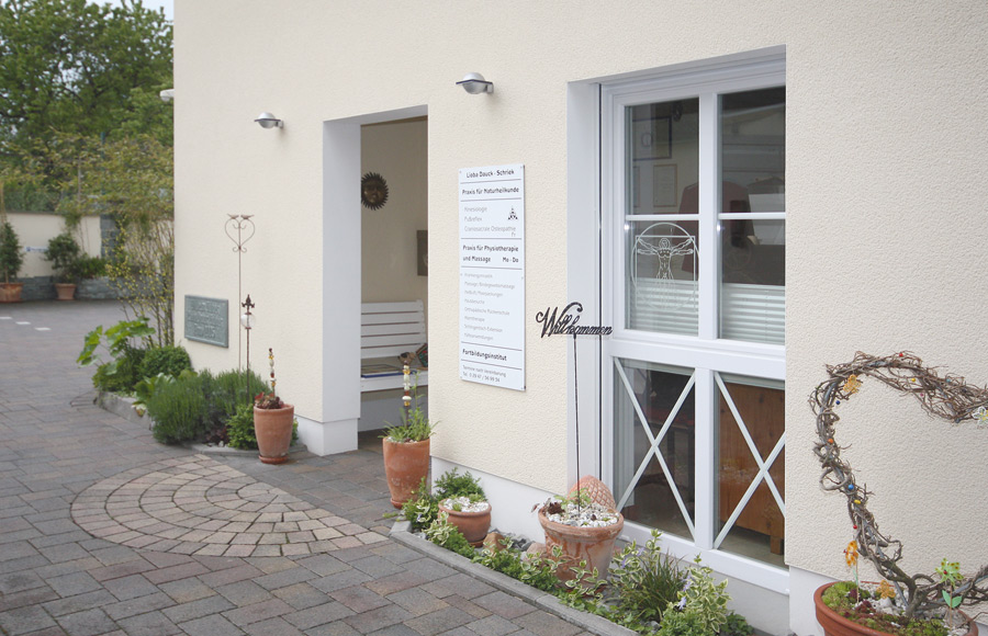 Biegen Sie dort rechts in die Handwerkerstraße ein. Passieren Sie die Firmen "Werbecar" und "Torte Luig". Unsere Praxis befindet sich nach ca. 200 Metern auf der linken Seite. Das Haus besitzt eine gelbliche Fassade. Parkplätze befinden sich hinten im Hof.